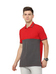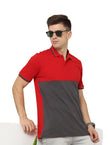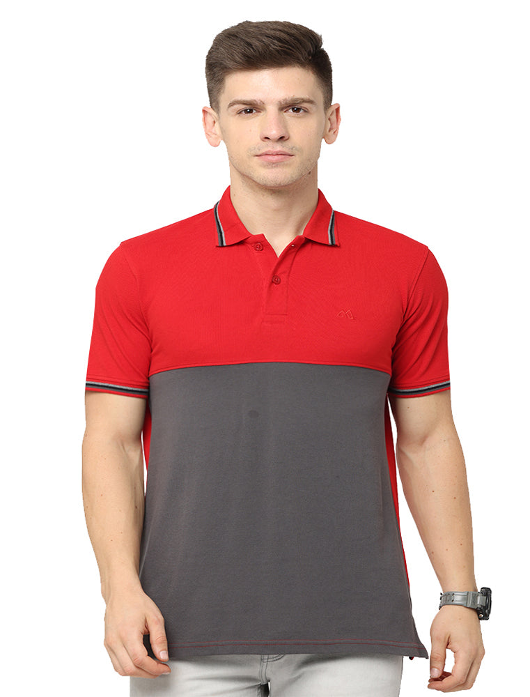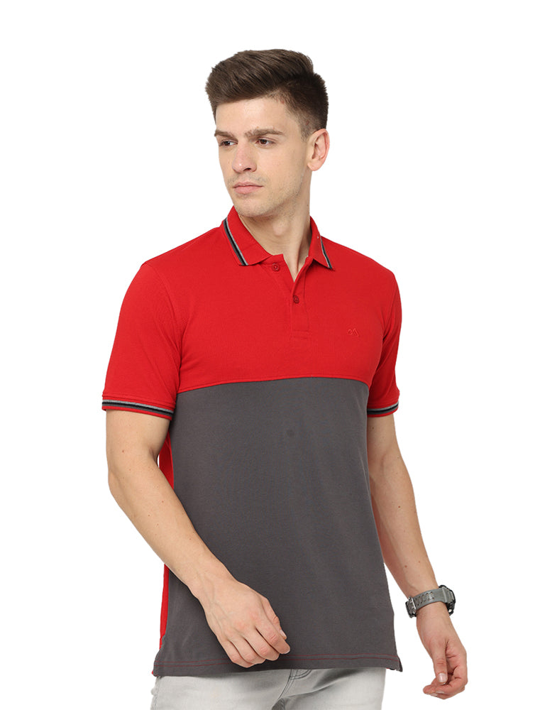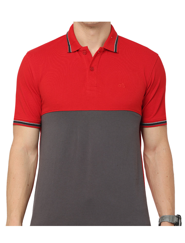 Mens Polo T Shirt With Cut Panel Red & Gray