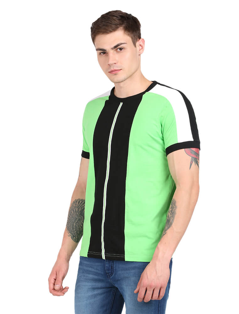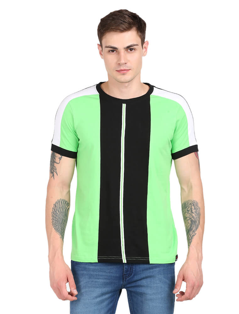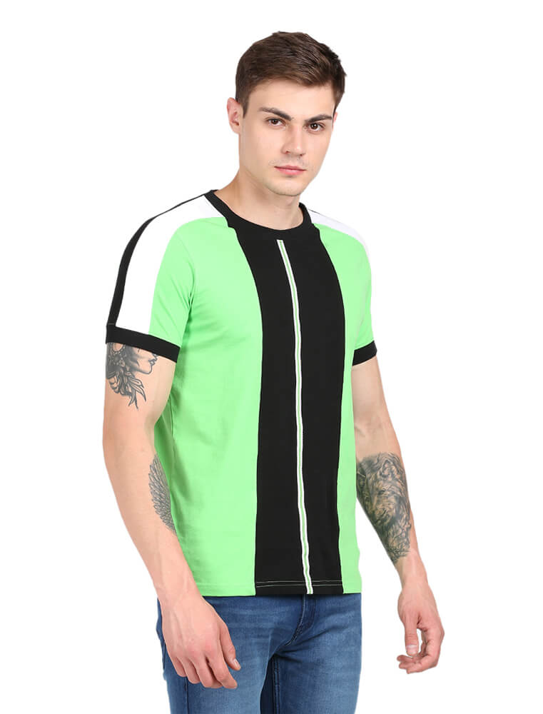 Men Round Neck Half Sleeve T-Shirt with Cut Panels