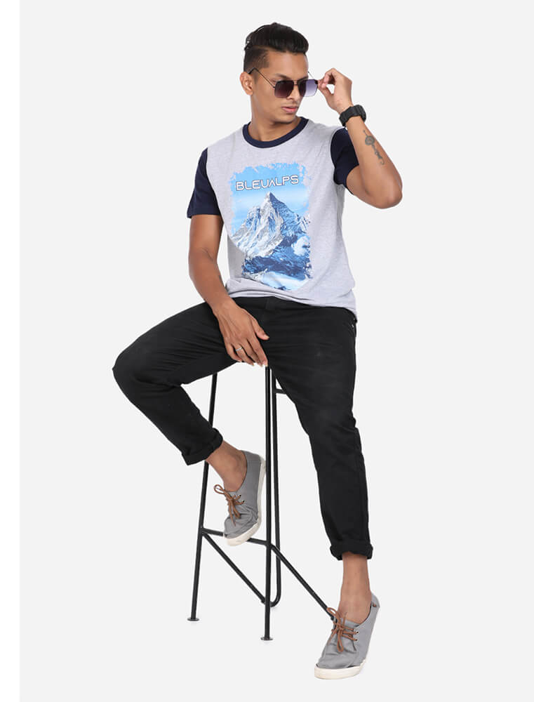 Men Round Neck Half Sleeve T-Shirt with Digital Printed