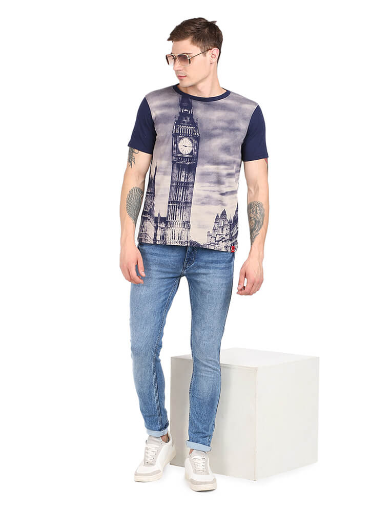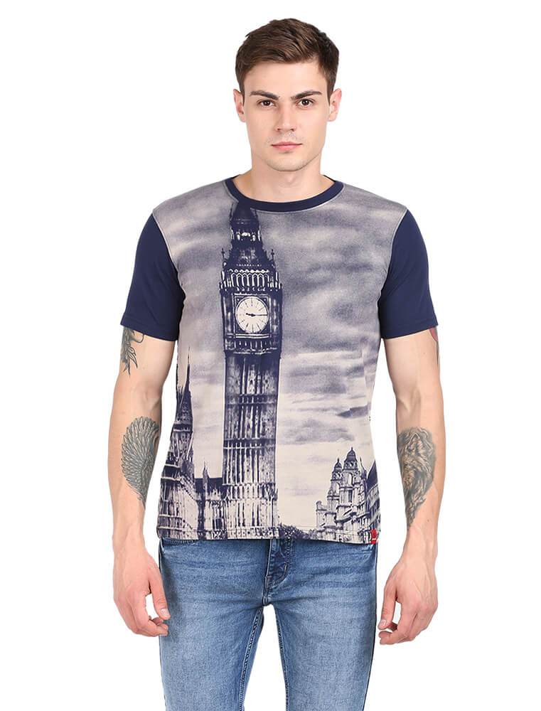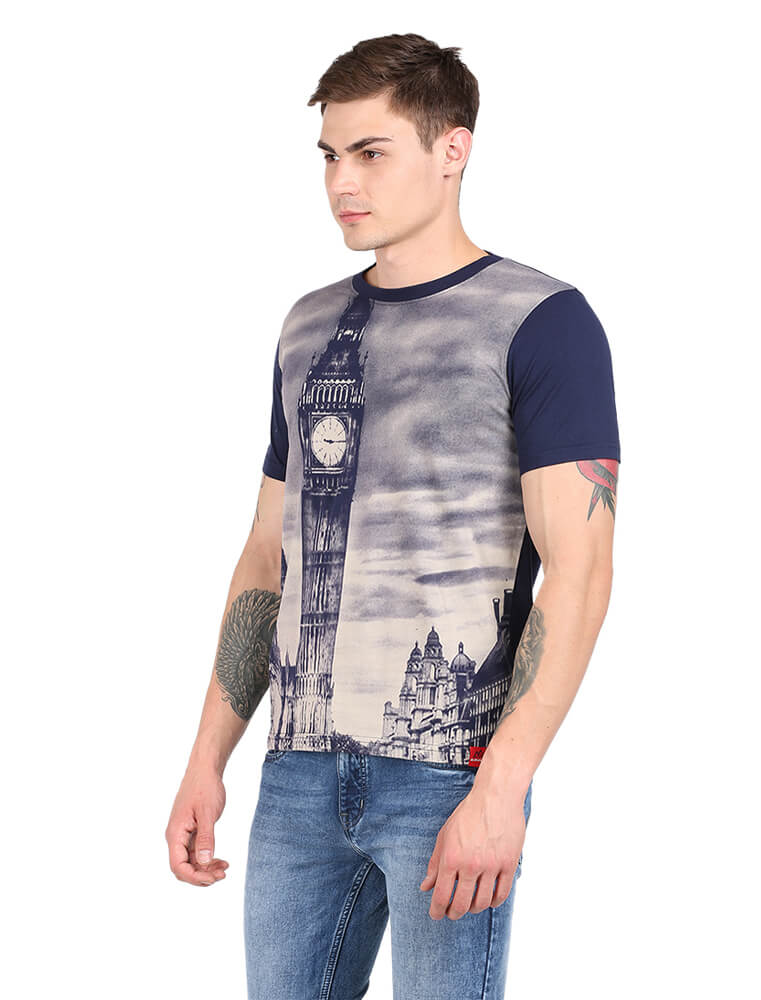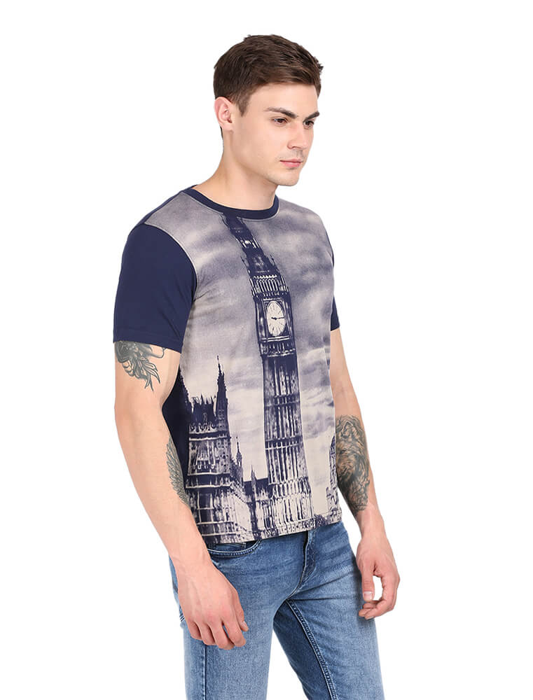 Men Round Neck Half Sleeve T-Shirt with Printed
